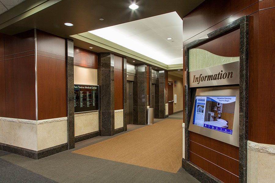 4 story medical office building in Chaska, Minnesota features a warm, contemporary style incorporating three brick colors, reflective glass and metal panels for accent and massing. Building is designed to be expanded vertically four more floors.